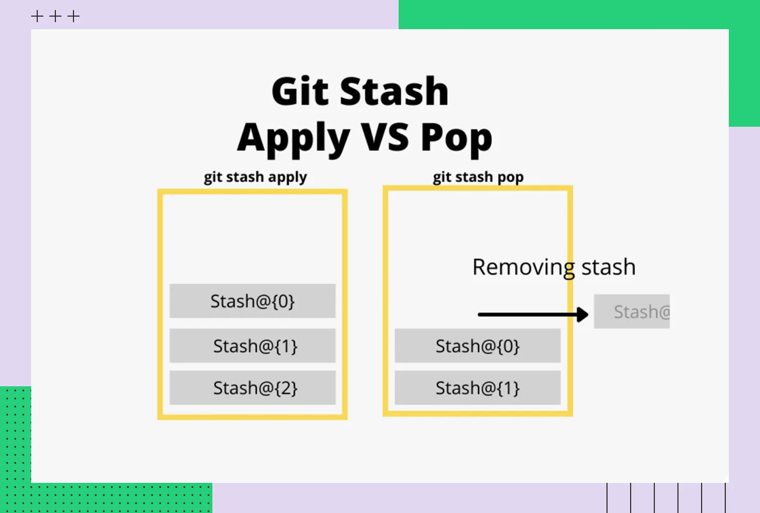 Команда git stash pop тоже позволит применить изменения, но после сразу их удалит. Используйте ее, если уверены, что копии изменений вам больше не понадобятся.