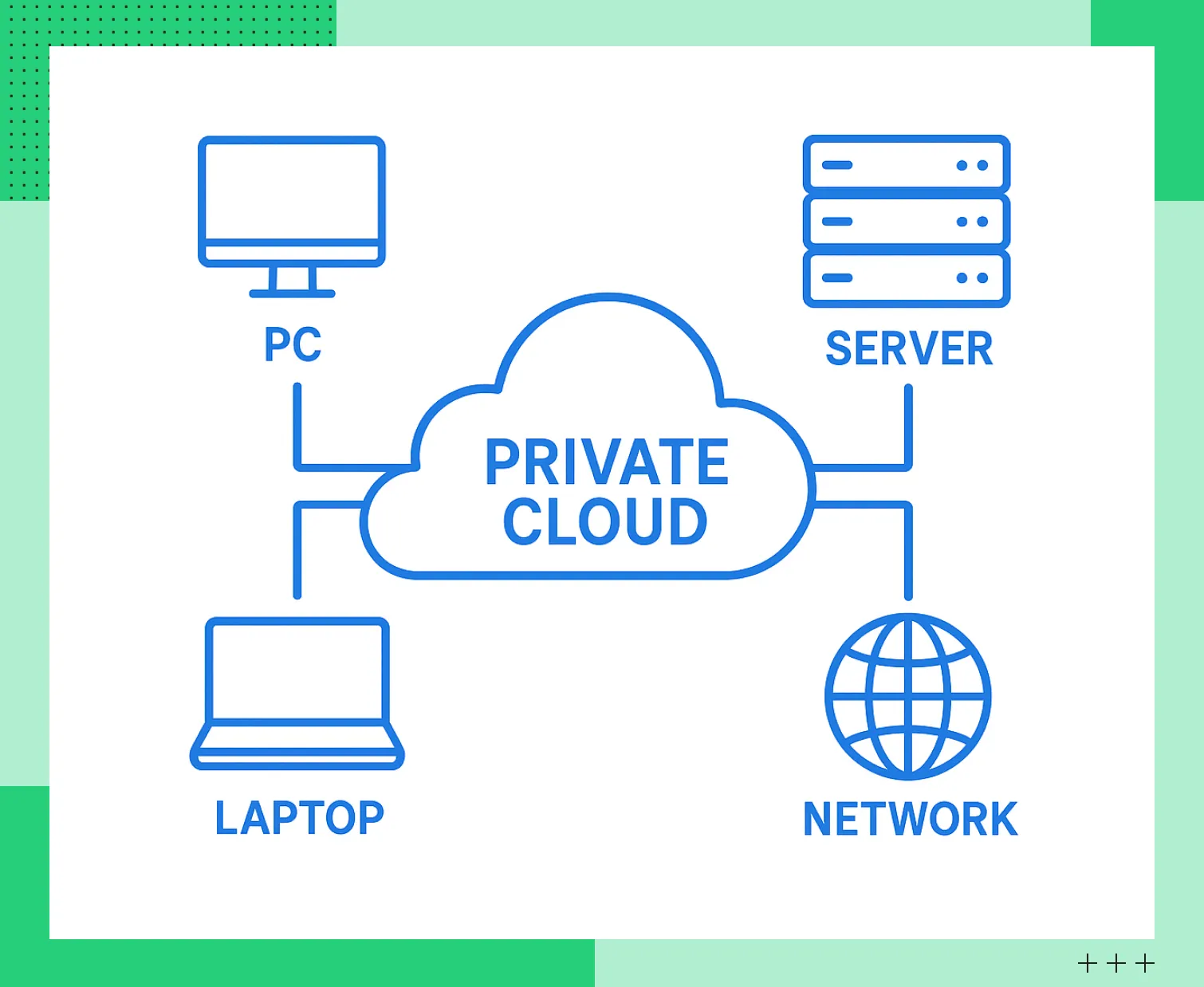 Частное облако — инфраструктура, предназначенная для одной организации. Она размещается в дата-центре компании либо у провайдера. Во втором случае доступ к ресурсам для других пользователей будет закрыт.