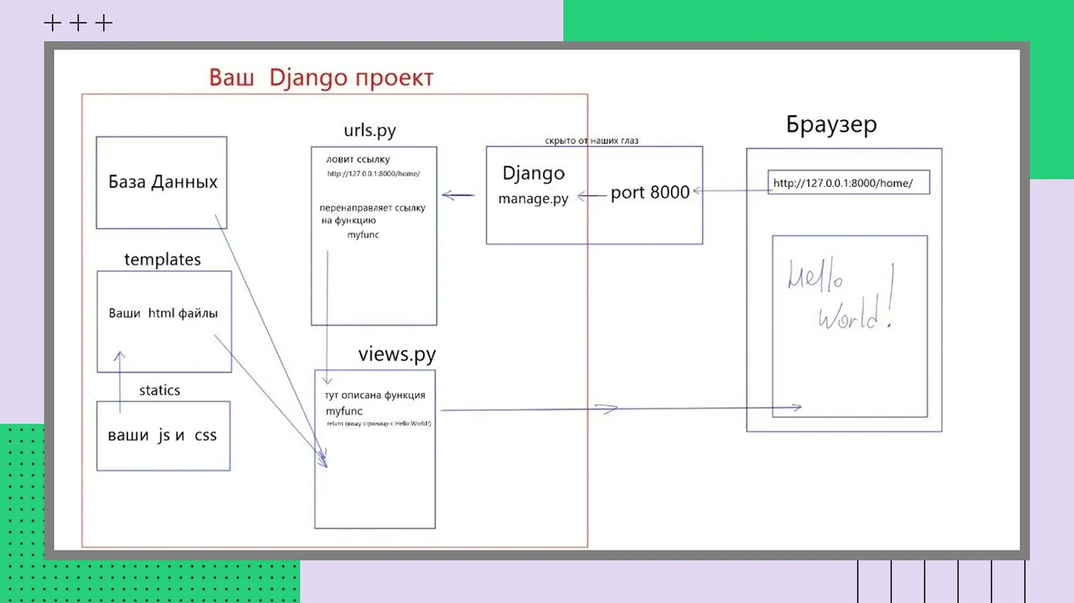 Представления и маршрутизация — два ключевых механизма в Django, которые отвечают за обработку запросов пользователя и выдачу ответа. Это основа для взаимодействия между пользователем и сервером, поэтому важно правильно все организовать.