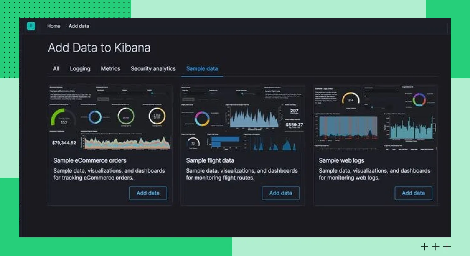 Kibana предоставляет графический интерфейс для работы с данными. Он позволяет создавать дашборды для визуализации логов и данных, презентации с визуальными элементами, графики и диаграммы. Kibana также применяется для управления индексами, создания алертов и настройки политик безопасности.
