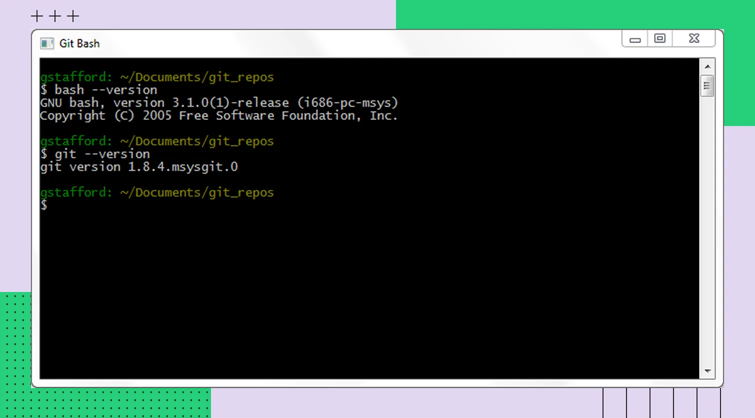 Убедитесь, что Git CLI работает корректно. В открывшемся окне Git Bash выполните команду: