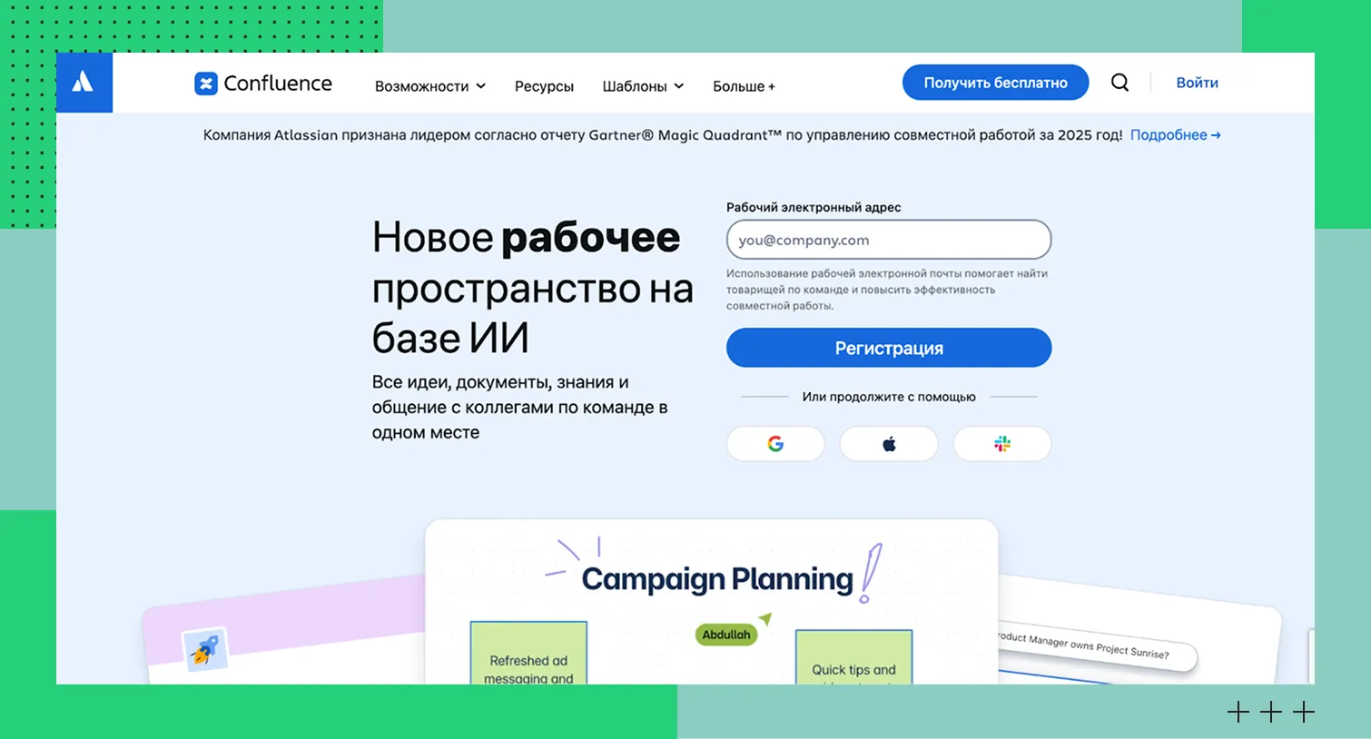 Confluence предлагает готовые шаблоны, удобный поиск, интеграцию с Jira, Trello и другими инструментами. Настраиваются права доступа настраиваются, чтобы можно было контролировать, кто видит и редактирует контент.