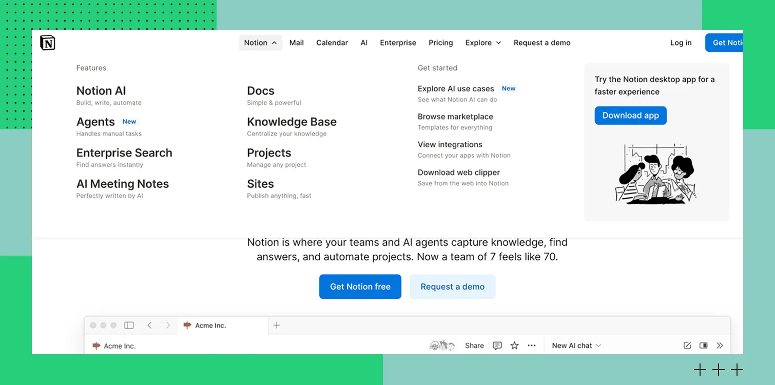 Notion поддерживает совместную работу в реальном времени, контроль доступа, интеграции с другими сервисами и использование искусственного интеллекта для автоматизации и создания контента.