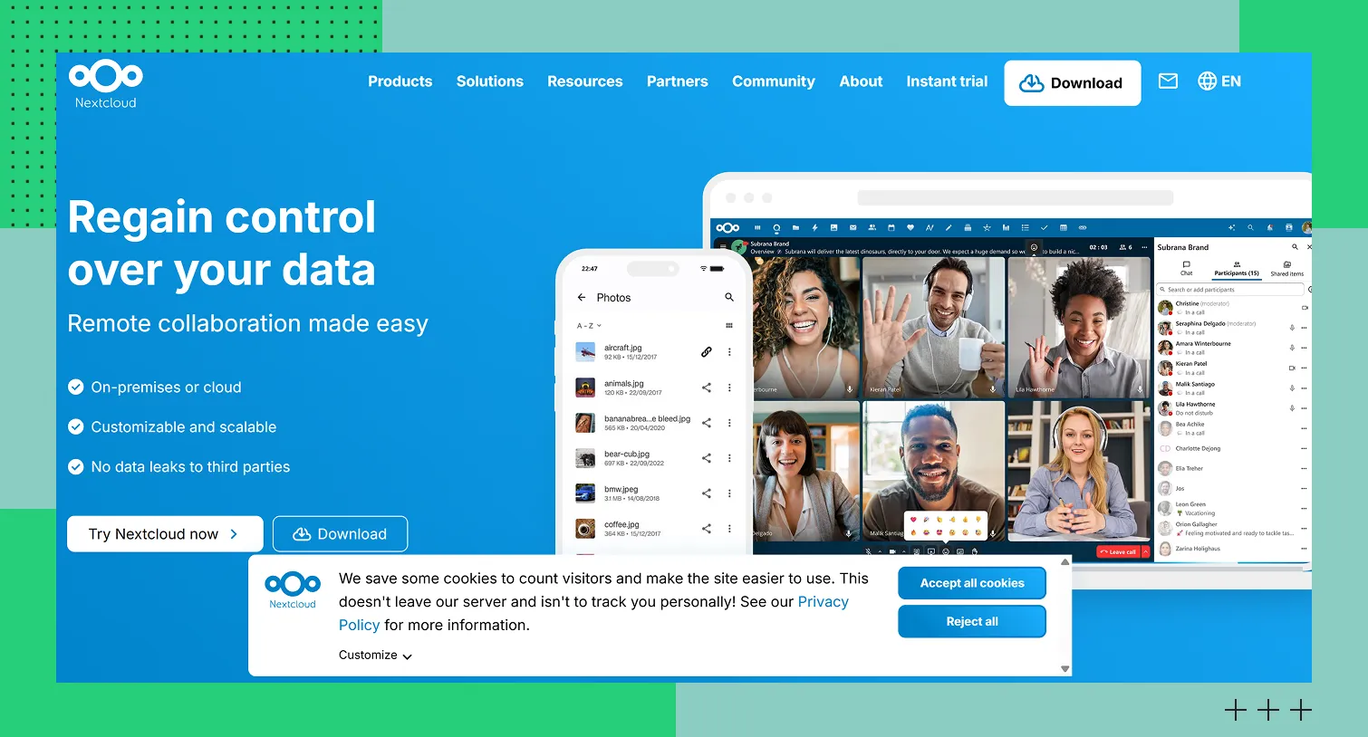Nextcloud — альтернатива коммерческим облачным сервисам, таким, как Google Drive, Dropbox или OneDrive, но с отличием. Данные будут под вашим полным контролем. Вы сами можете решать, где разместить облако — на собственном сервере или в доверенном дата-центре и разграничивать доступ к информации. Это плюс для организаций, которым важны безопасность и независимость от внешних провайдеров.