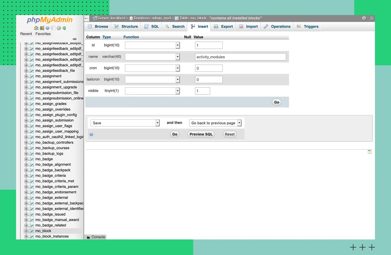 Через phpMyAdmin удобно создавать, просматривать, редактировать и удалять базы данных, столбцы и индексы. Также можно управлять пользователями и их правами доступа, обрабатывать SQL-запросы. Кроме того, phpMyAdmin предоставляет встроенные инструменты для мониторинга активности серверов, контроля запущенных процессов и диагностики неполадок с производительностью.