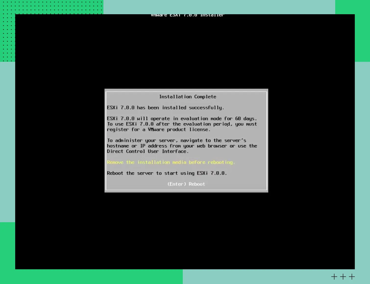 Дождитесь появления экрана загрузки ESXi. Чтобы начать установку, нажмите Enter.