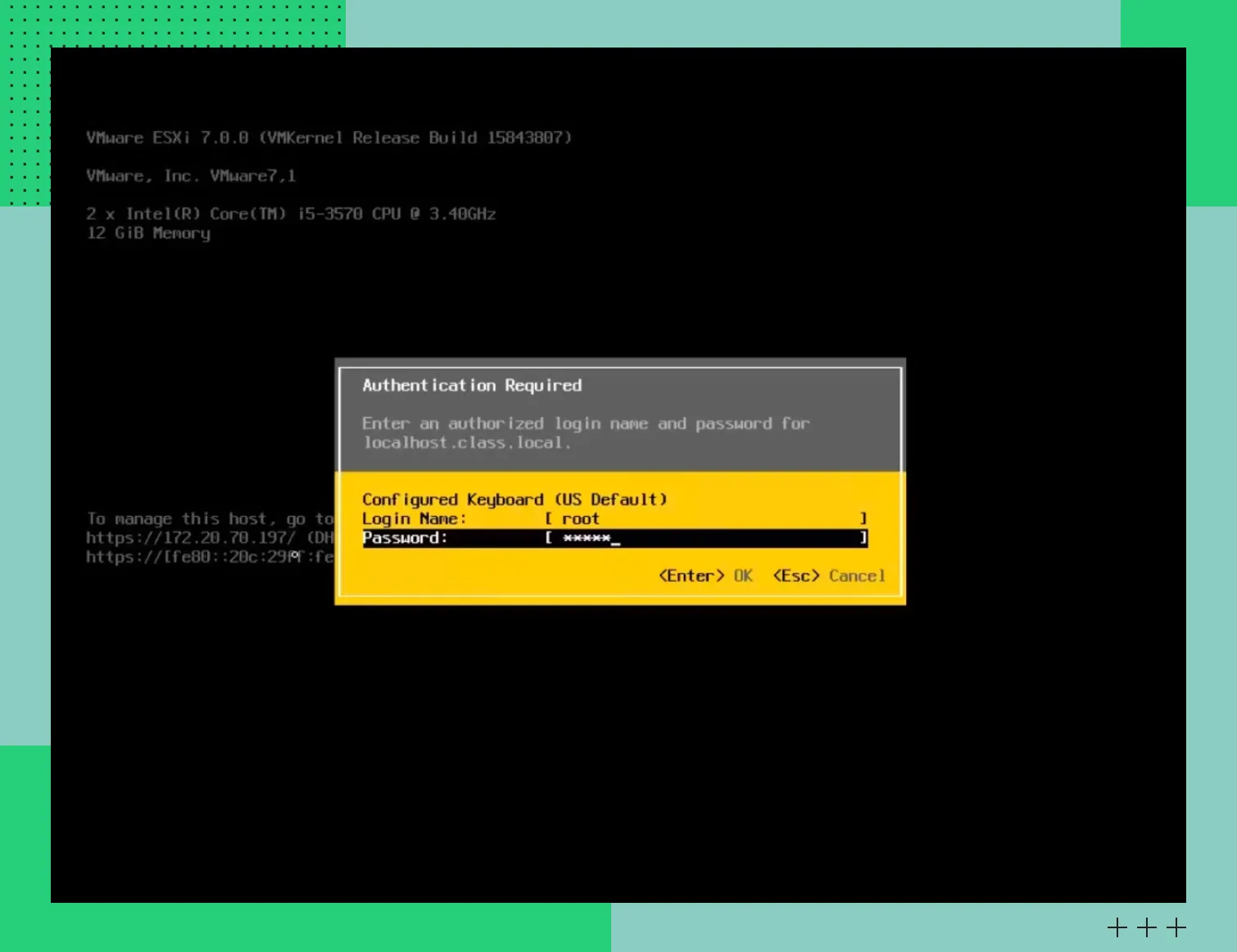 Экран с IP-адресом для подключенияНажмите клавишу F2 и введите пароль, который вы ранее придумали для системы: