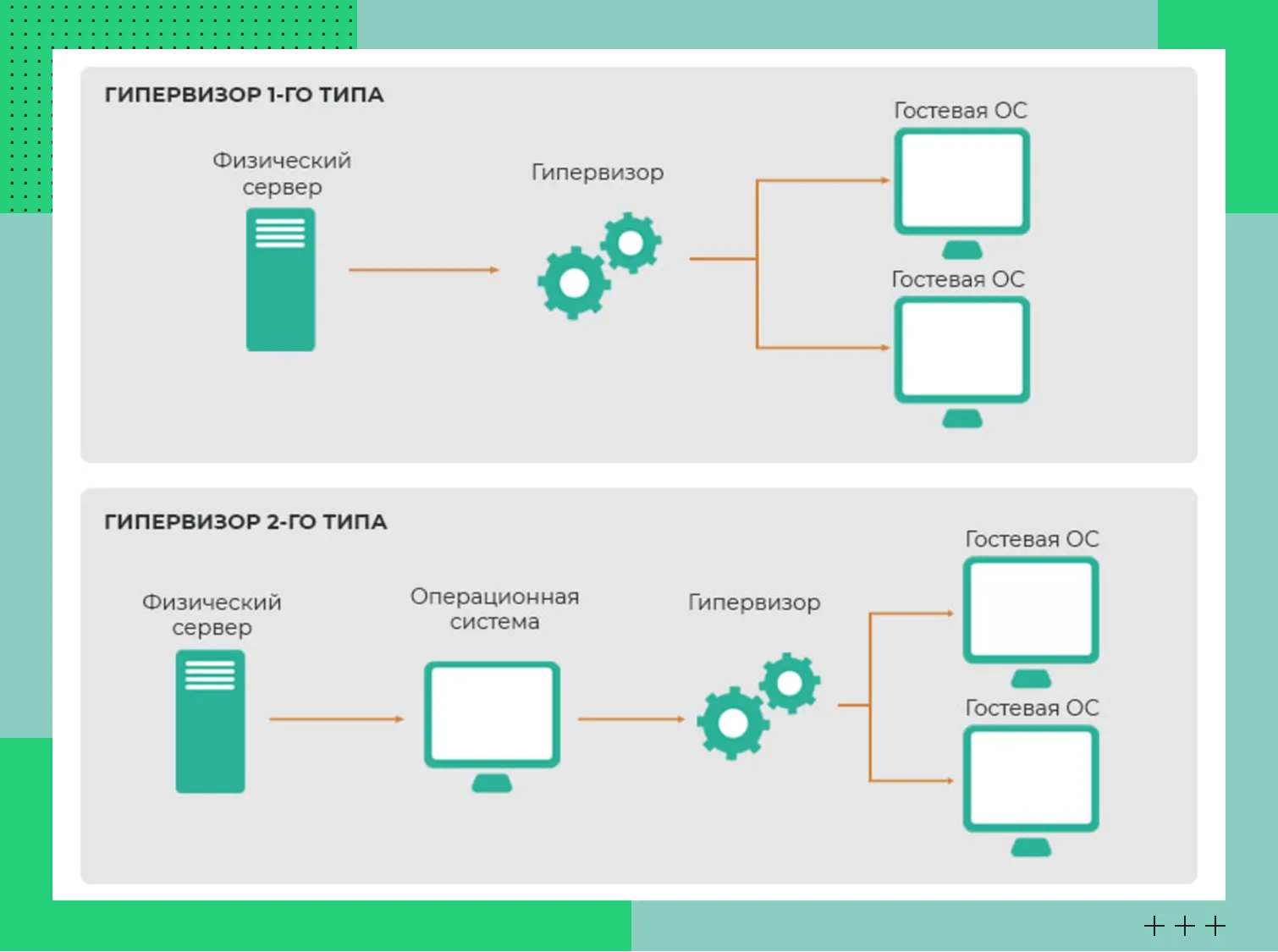 Критерий | Гипервизор типа 1 | Гипервизор типа 2 |