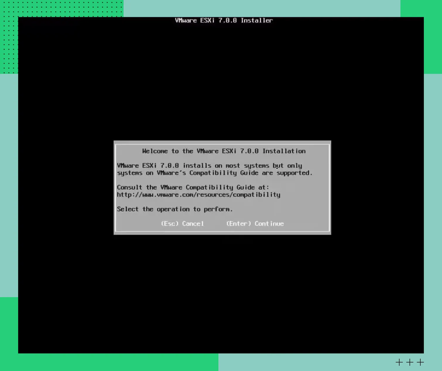 Экран предупрежденияПосле установки ESXi запускает сканирование устройств. Если какое-то не поддерживается, вы увидите сообщение об ошибке.