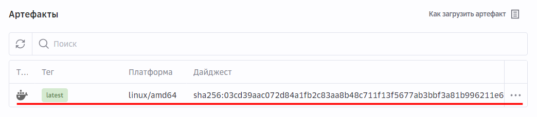 В личном кабинете перейдите в раздел Реестры → Репозитории → Артефакты сервиса Artifact Registry и убедитесь, что образ загружен.