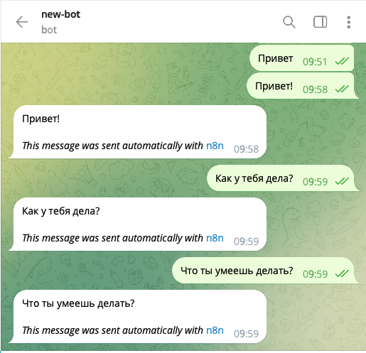 настроить логику работы бота с помощью действий, доступных в n8n;