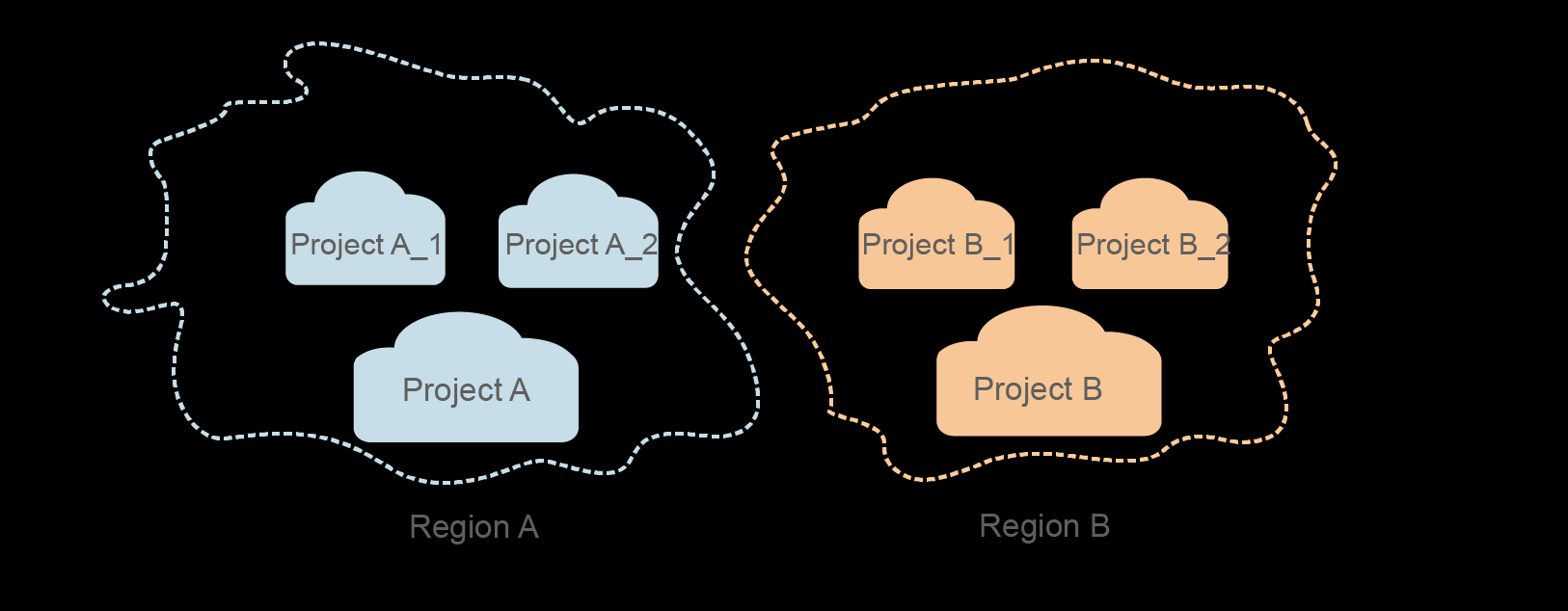 A project corresponds to a region. Projects group and isolate resources (including compute, storage, and network resources) across physical regions. Users can be granted permissions in a default project to access all resources in the region associated with the project. For more refined access control, create subprojects under a project and create resources in the subprojects. Users can then be assigned permissions to access only specific resources in the subprojects.