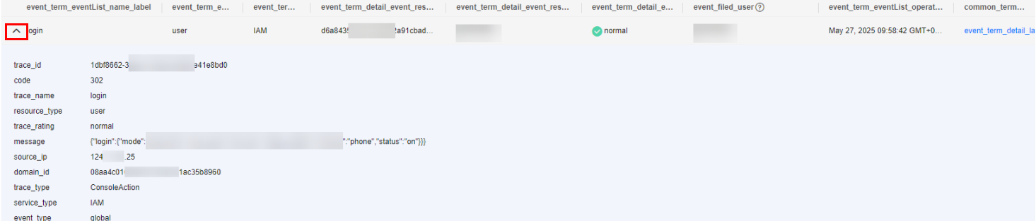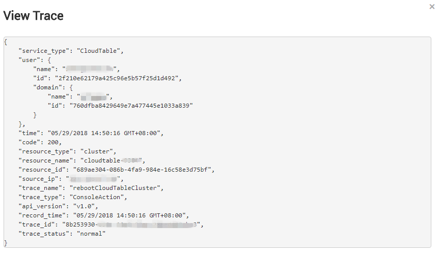 For details about key fields in the CTS trace structure, see the "Trace References" > "Trace Structure" in the Cloud Trace Service User Guide.