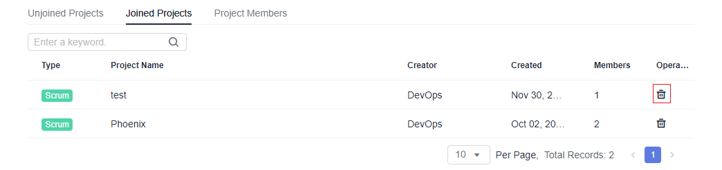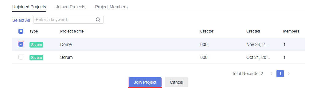 You can view projects that you have joined or have not joined, and the project members.