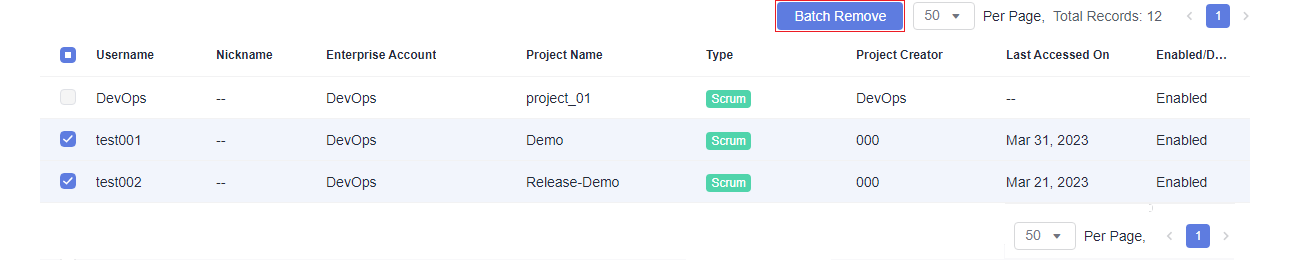 To remove multiple members, select them and click Batch Remove.