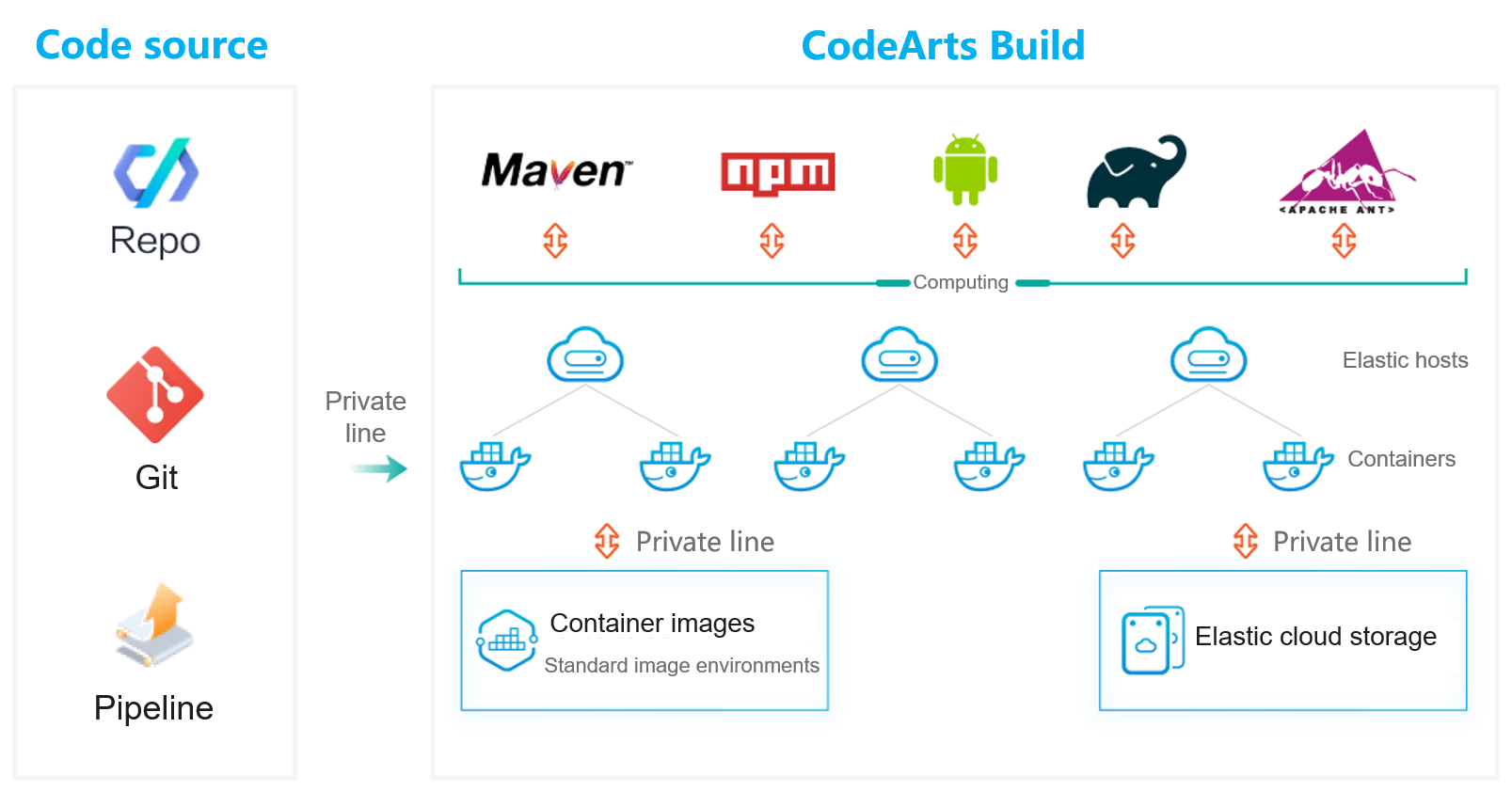 • System images: provided by CodeArts Build for compilation and packaging with popular programming languages.