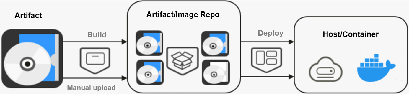 You can either manually upload artifacts or create a build task to save artifacts to CodeArts Artifact or an image repository. CodeArts Deploy uploads and installs the artifacts on a host or container.