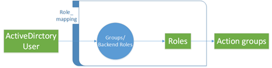 The rolebase permissions group of the LDAP server must be mapped to the roles in the Elasticsearch cluster. Figure 1 illustrates the mapping. For details about the configuration, see Creating Users for an Elasticsearch Cluster and Granting Cluster Access.