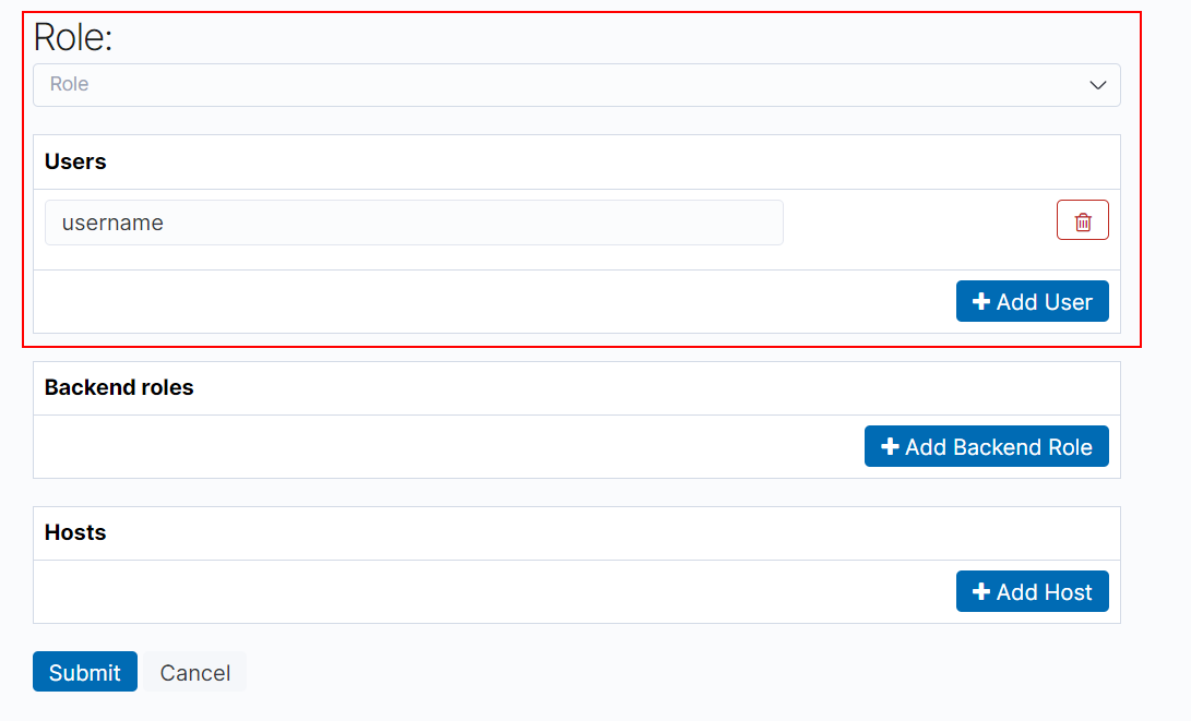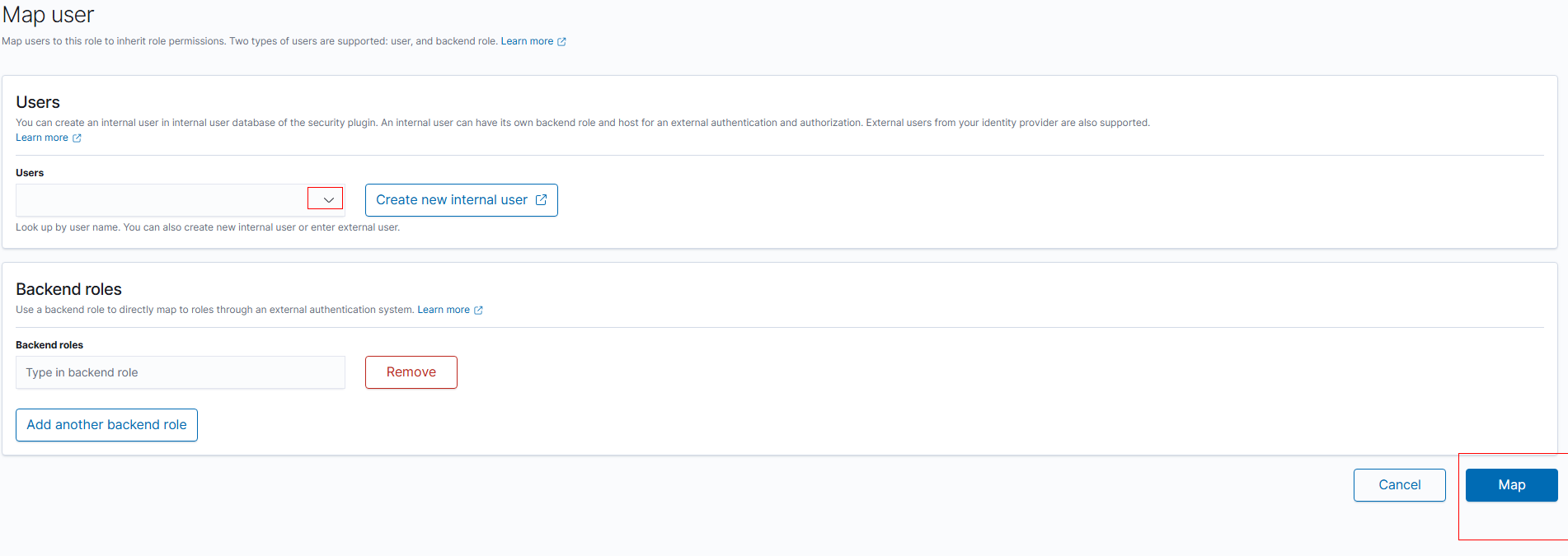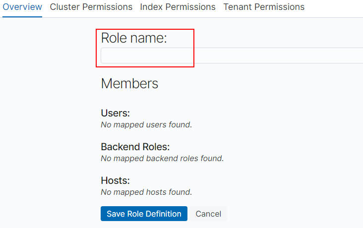 With role mapping, you can configure the members of each role and assign roles to users based on usernames, backend roles, and host names. For each role, you can configure cluster, index, and document permissions, as well as the permission to use Kibana.