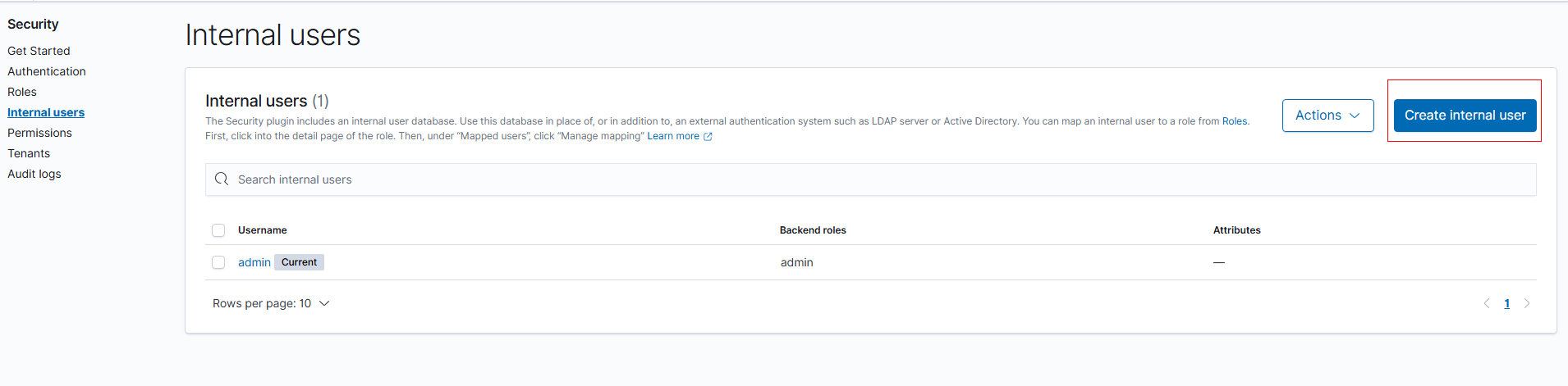 - On the Internal users page, click Create internal user. The page for creating a new user is displayed.