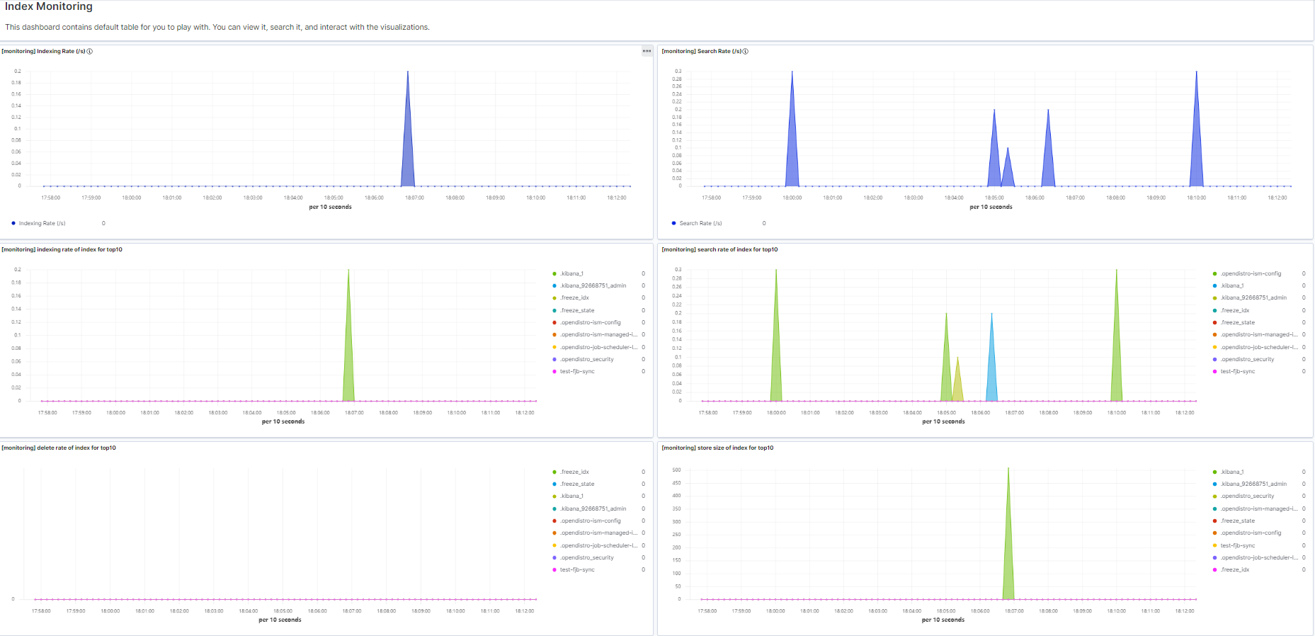 - Check index monitoring results in preconfigured dashboard charts.