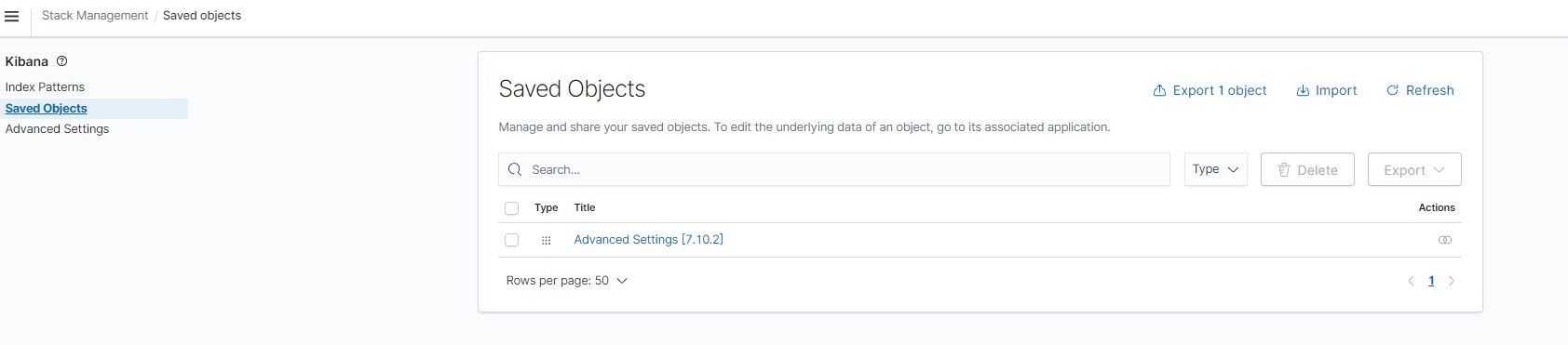 - On the Kibana console, choose Management > Stack Management > Saved objects.