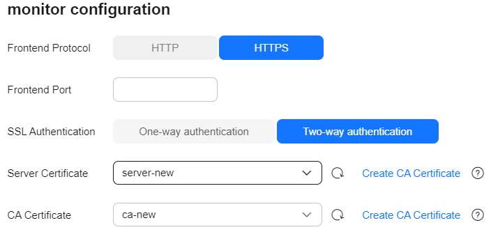 Client authentication mode. Set this parameter only when Frontend Protocol is set to HTTPS.