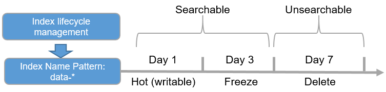 In this section, a lifecycle policy is configured to automatically freeze an index three days after it is created and dump data to OBS. The index will be deleted seven days after it is created.
