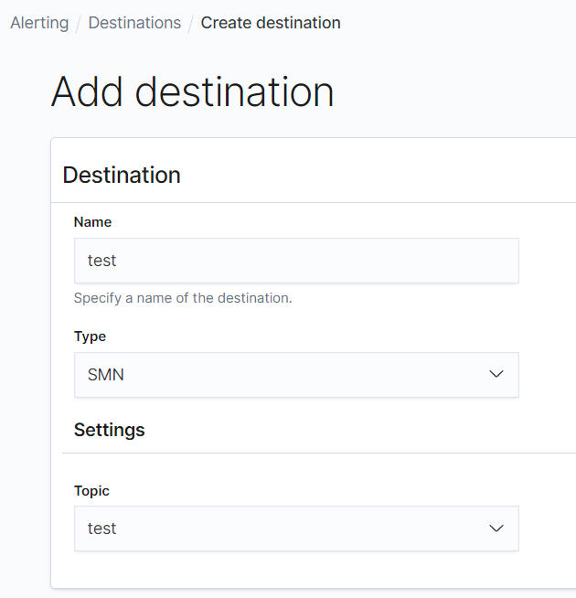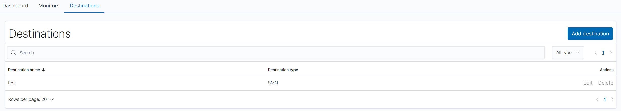 - Click Create to return to the destination list. If the created SMN destination is displayed in the list, the creation is complete.