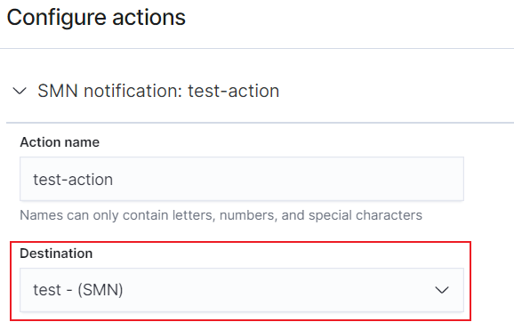 Select the SMN topic you have created in Prerequisites for sending alarm messages.