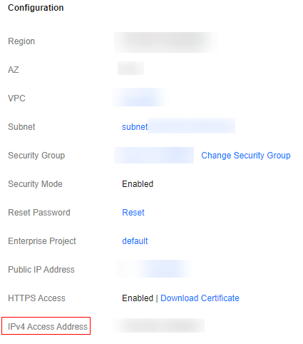 - If you disable Kibana public network access and then re-enable it, the public IP address for accessing Kibana may change. Exercise caution.