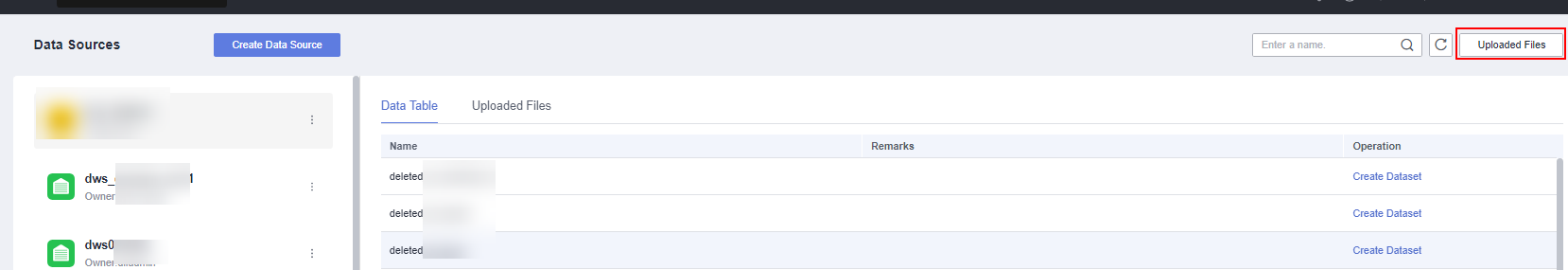 - To add data tables in the data source to DataArts Insight, see Creating a Dataset Through Visual Configuration.