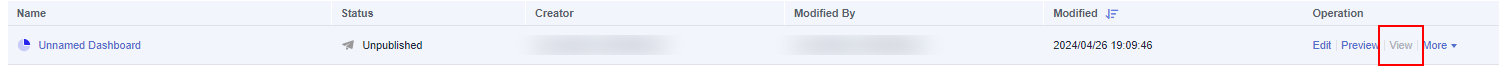 2. On the displayed page, locate the row containing a desired dashboard and click View in the Operation column to view the dashboard.