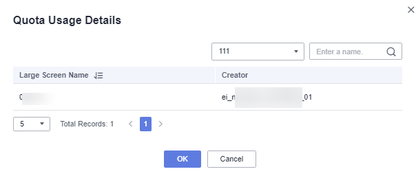 - To check the quota usage details of the large screen, you can click View Details in the Operation column of the selected project. The Quota Usage Details page is displayed.