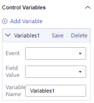 - Select the event, field value, and variable name, and click Save.