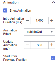 - Start from Previous Position: If this option is selected, the animation is played from the position of the previous data when the component data is updated. If this option is deselected, the animation is played from the initial position when the component data is updated.