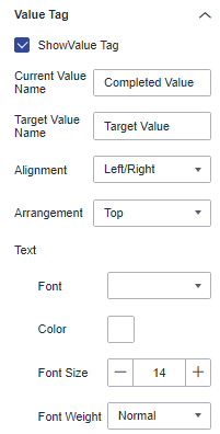 - Text: You can set the font, color, font size, and font weight of the value tag.