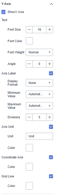 - Axis Unit: whether to display the axis unit. The unit color and unit name can be set.
