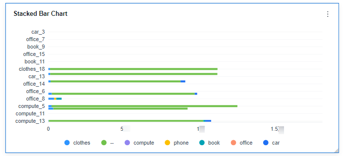 A stacked bar chart can display the trend of each data item over a period of time and the comparison between data items. It can visually display the data of each sub-category contained in a large category, as well as the proportion of each sub-category, showing the relationship between individual items and the overall value.