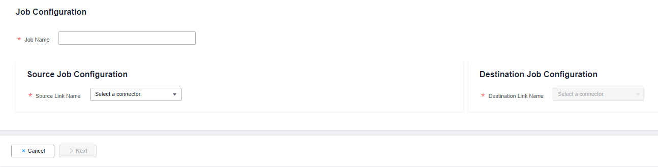 2. Choose Table/File Migration > Create Job. The page for configuring the job is displayed.