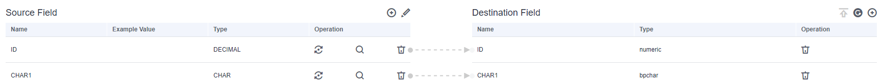 • Column names are displayed when the source of the migration job is OBS, CSV files are to be migrated, and parameter Extract first row as columns is set to Yes.