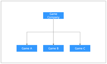 For example, a game company launches multiple games, such as A, B, and C. The cost of each game is calculated separately. Some games are popular and continue to operate. Others receive poor customer response and are discontinued after a period of time. In this case, the game company can create an independent enterprise project for each game respectively, for example, project A, B, and C, and add user groups to manage the projects. To access Enterprise Project Management Service (EPS), the company needs to apply for an account. Figure 1 shows the organization structure of the game company, and Figure 2 shows the solution diagram.