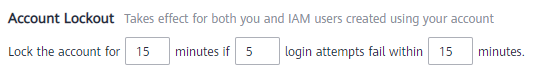 - Lockout duration: The value range is from 15 to 30 minutes, and the default value is 15 minutes.