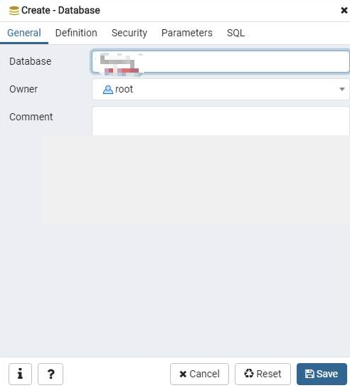 - In the navigation pane on the left of pgAdmin, right-click the target instance node and choose Create > Database from the shortcut menu.