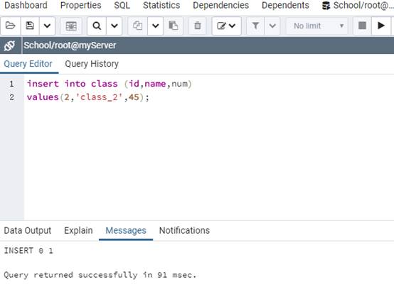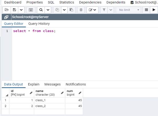 On the top menu bar, choose Tools > Query Tool. The SQL CLI is displayed.
