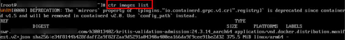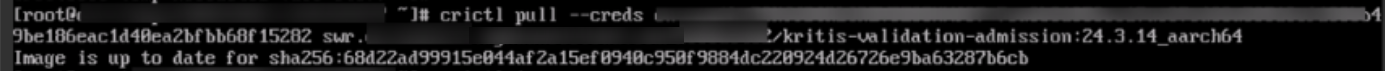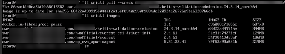 - Check whether the image is pulled successfully.- If the command was copied from the Operation column, run crictl images to check whether the pull is successful.