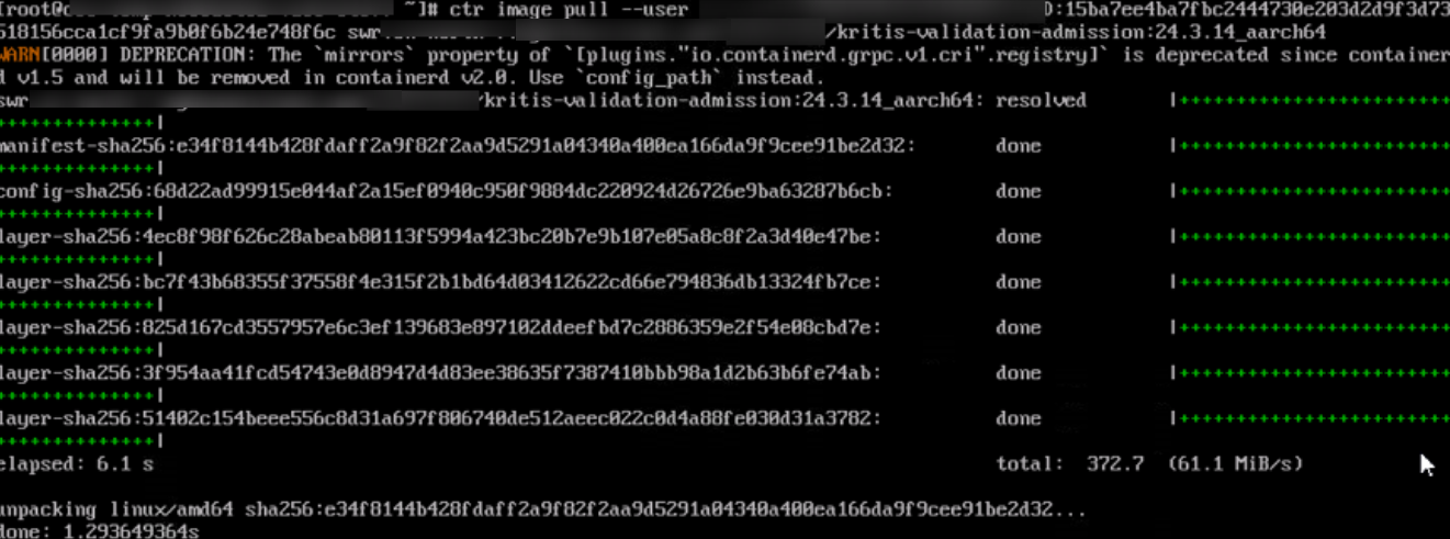 - If the command was copied from the Pull/Push tab, run ctr images list to check whether the pull is successful.