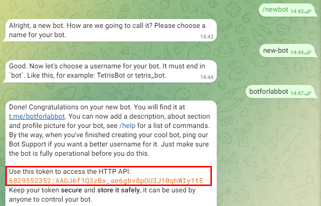 В результате вы получите токен. Сохраните его — он потребуется на следующих этапах.